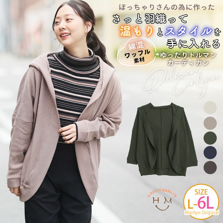 ゆったり着られる 綿混ワッフル素材カーディガン