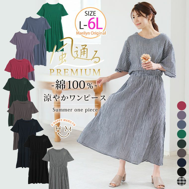 風通るPREMIUM上品爽やか綿100%夏ワンピース