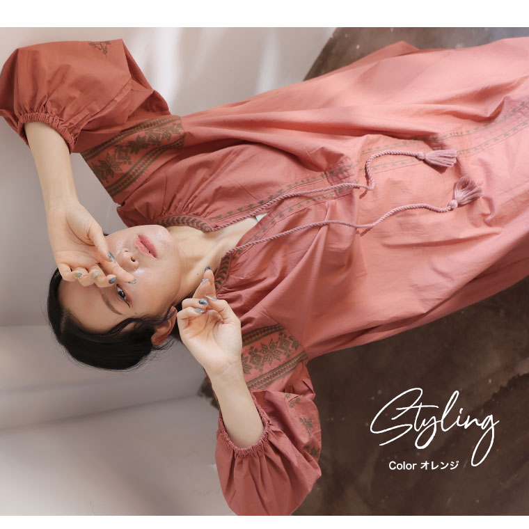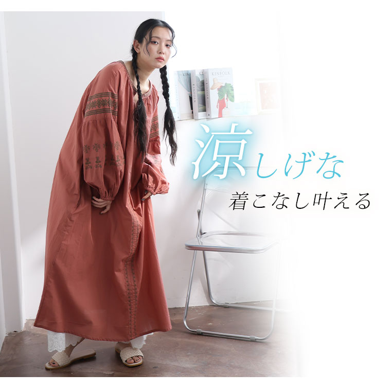 大きいサイズ 【FROM INDIA】 刺繍 ワンピース