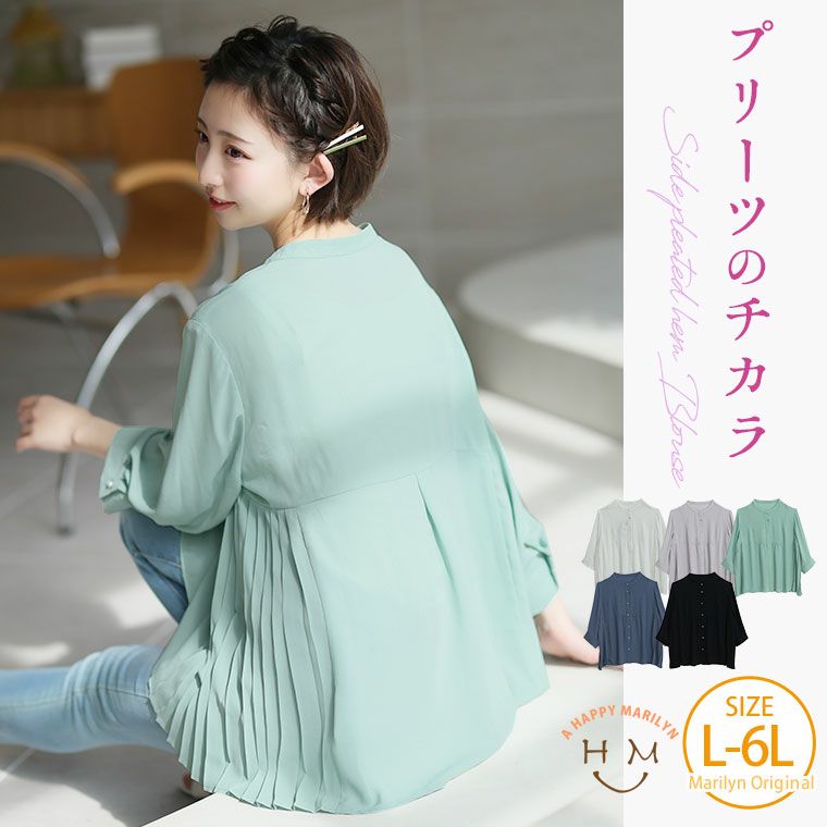プリーツが大人上品 七分袖ブラウス