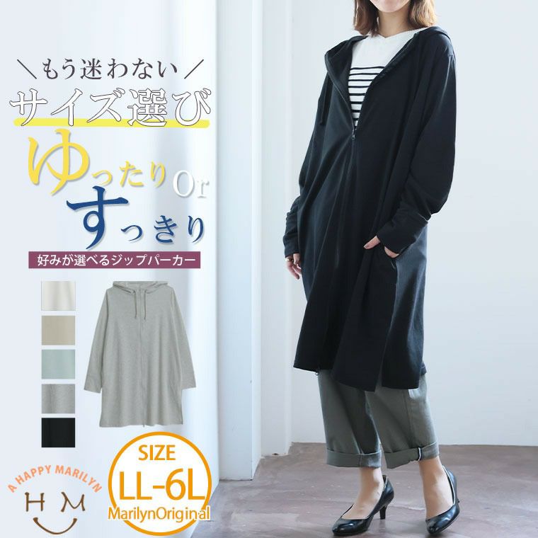 すっきり・ゆったりの着用感が選びやすいシンプルロング丈パーカー