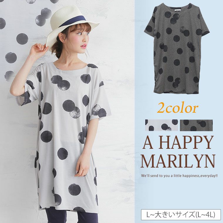 ぼかしたドット柄のプリントが可愛い。半袖コクーンワンピース