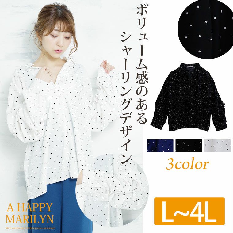 繊細なデシンドットプリントが大人可愛い。ねじりスリーブスキッパー長袖シャツ