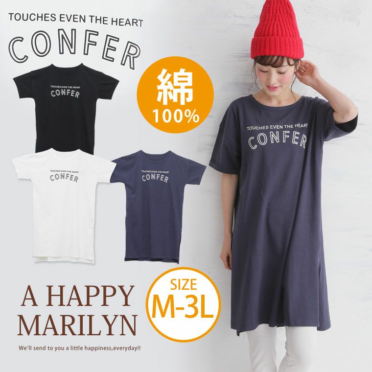 サイドスリット入りでゆったり着こなす。ロゴプリントBIGカットソーワンピース