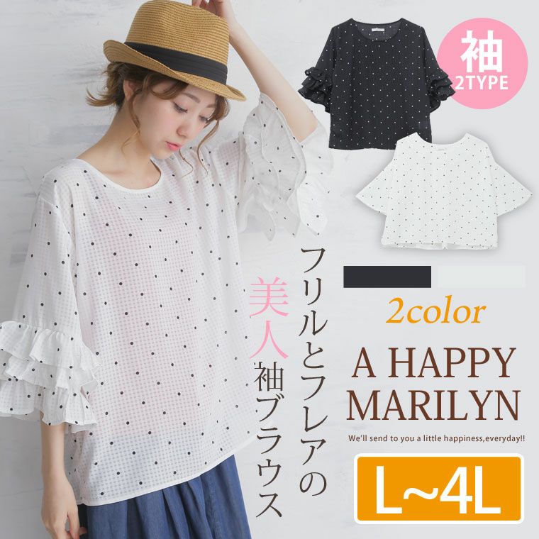 透け感のあるシャドーギンガム生地を使用し華やかな着こなしに。ドット柄ブラウス