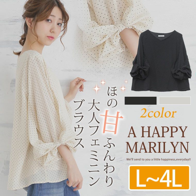 袖口リボンが女性らしいアクセント。リボンバルーンスリーブブラウス