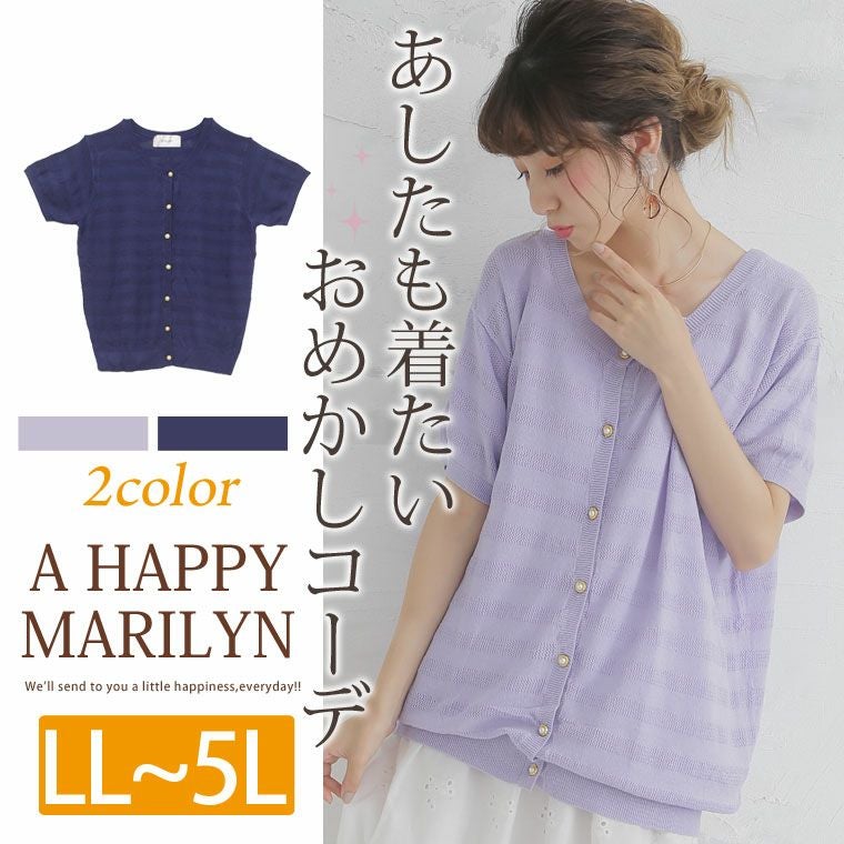 透かしボーダーデザインで季節感たっぷりに。おめかしボーダーカーディガン