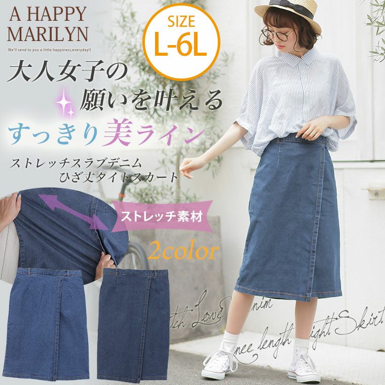 ストレッチスラブデニムひざ丈タイトスカート