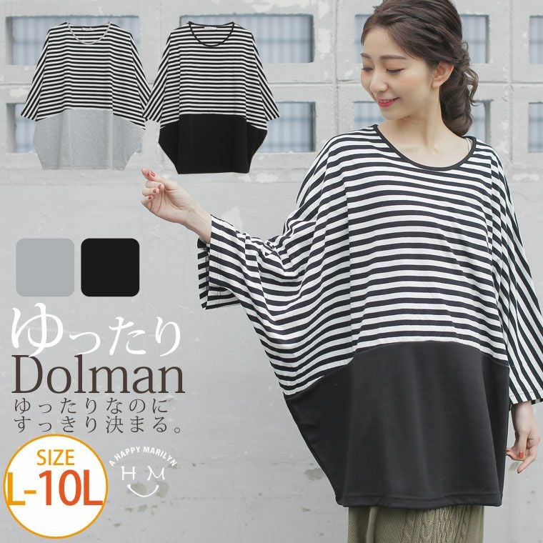 ボーダー×無地の切替デザインでメリハリスタイル。ゆったりプルオーバー