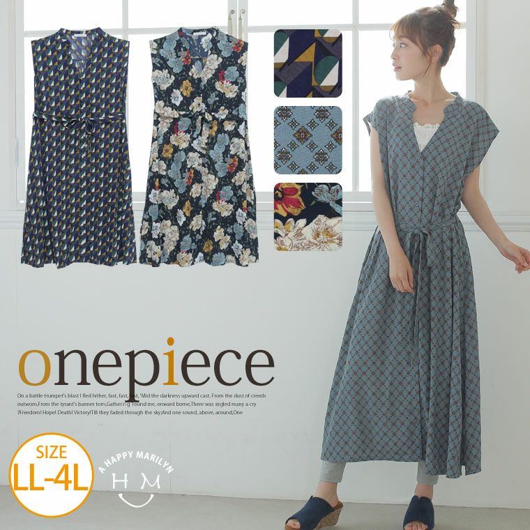 ウエストリボンでメリハリシルエット!!3柄から選べるシャツワンピース