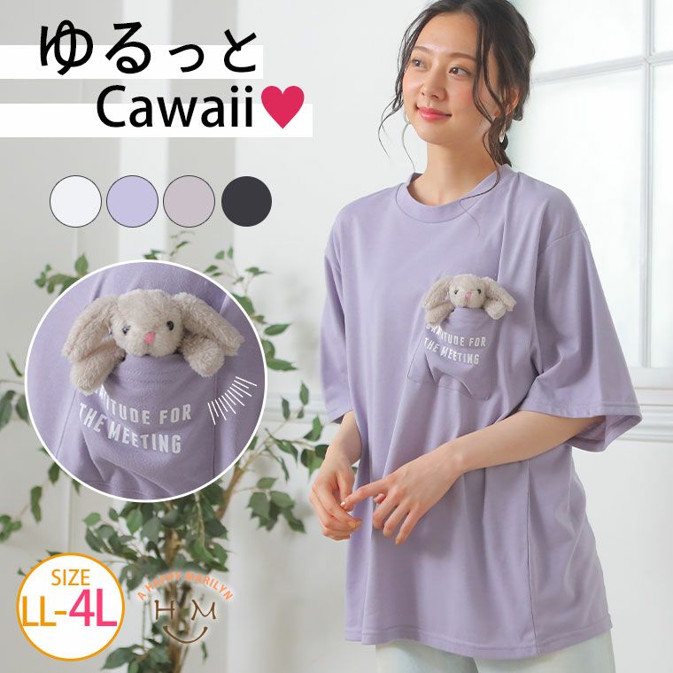 ゆるっとかわいい ぬいぐるみ付き 胸ポケットTシャツ (うさぎタイプ)