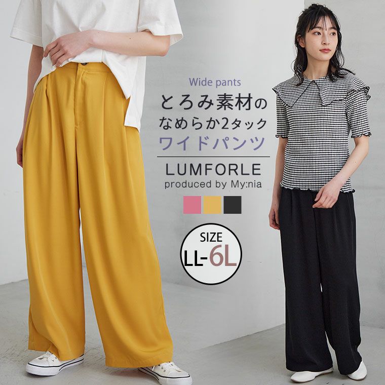洗えるとろみ素地でゆったり着れるワイドパンツ