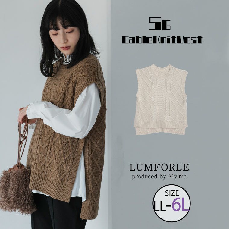 大きいサイズ 【LUMFORLE produced by My:nia】5G ケーブルニット 前後差 ベスト | 大きいサイズの通販ならハッピーマリリン