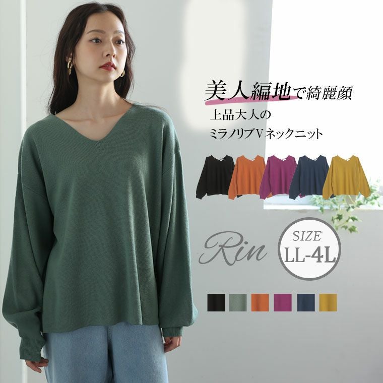6色から選べる 程よいゆるシルエットのVネックニット