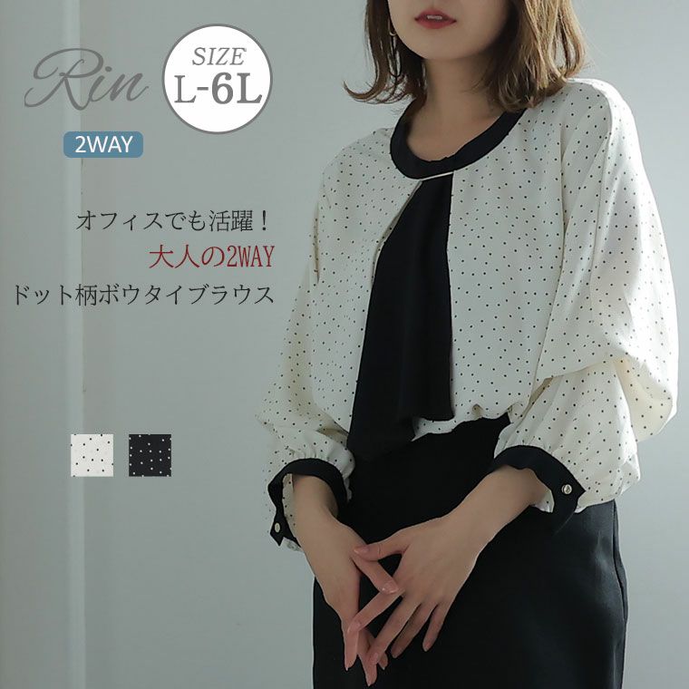 ボタン1つで2スタイル愉しめるドット柄ブラウス