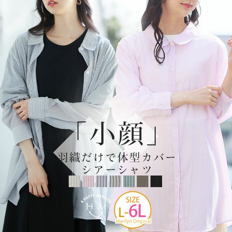 ぽっちゃりさんの為の 小顔に見えるシアーシャツ