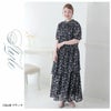バックリボンと切り替えフリルで華やかにかわいい花柄ワンピース