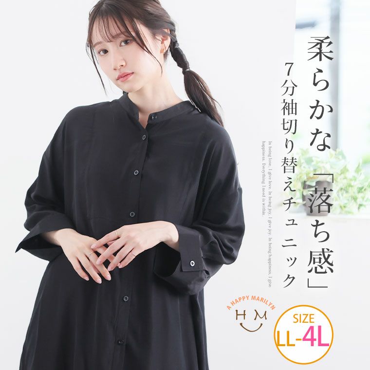 6. 大きいサイズ 七分袖 バンドカラー 前あき チュニック | 大きいサイズの通販ならハッピーマリリン