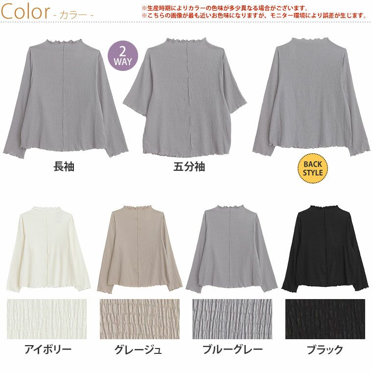 選べる二袖メローデザインふくれジャガードトップス