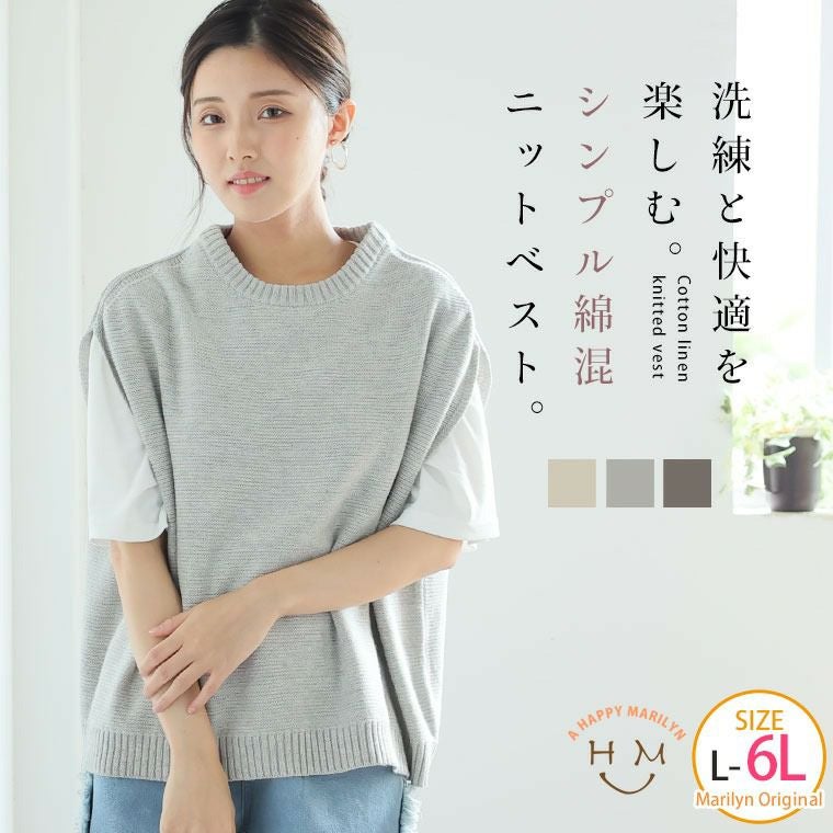 レイヤードスタイルに使える綿混シンプルニットベスト