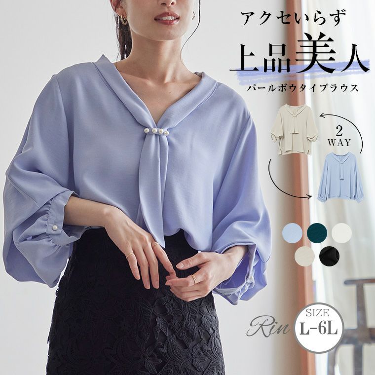 上品に華やぐ大人のパールボウタイブラウス