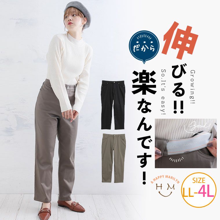 実は伸びるから楽!きれいめデザインパンツ