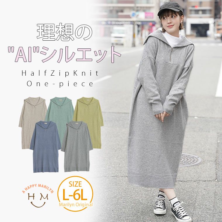 ハーフジップ・ディテールがポイントのニットワンピース