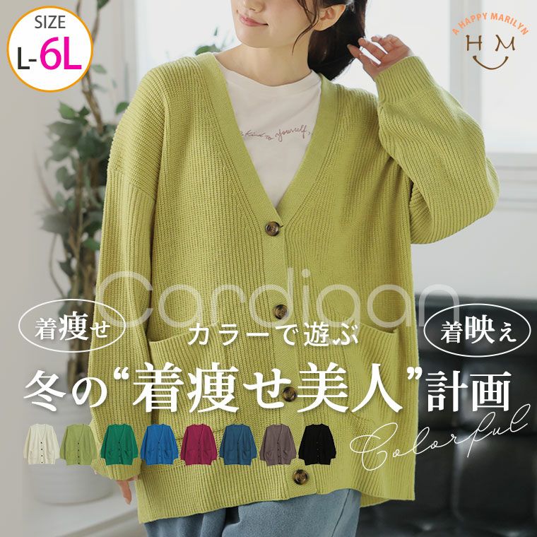 着ぶくれ回避! カラフルに遊ぶ華奢魅せ美人のニットカーデ