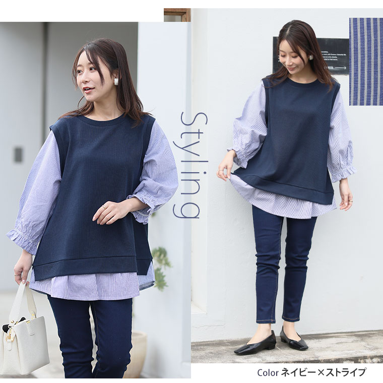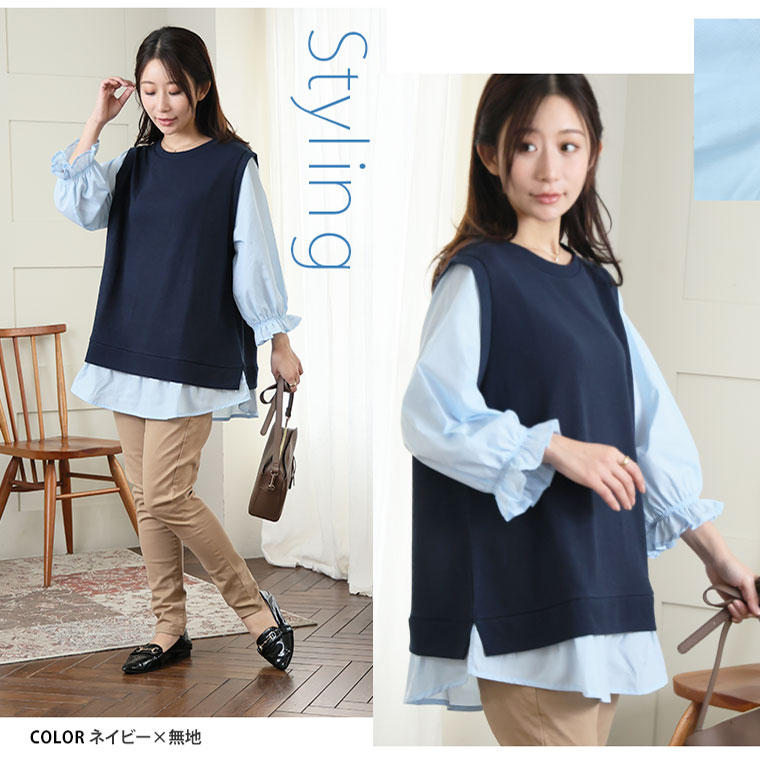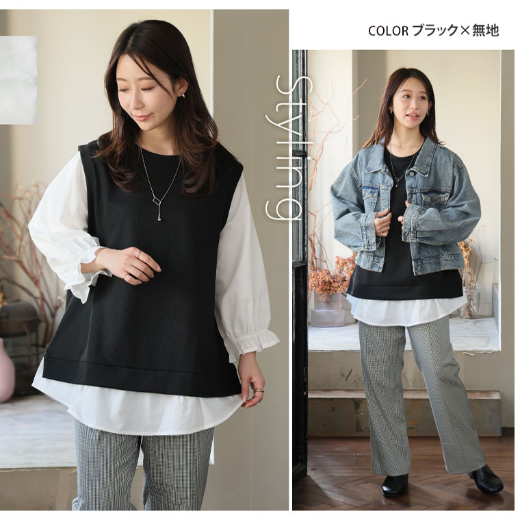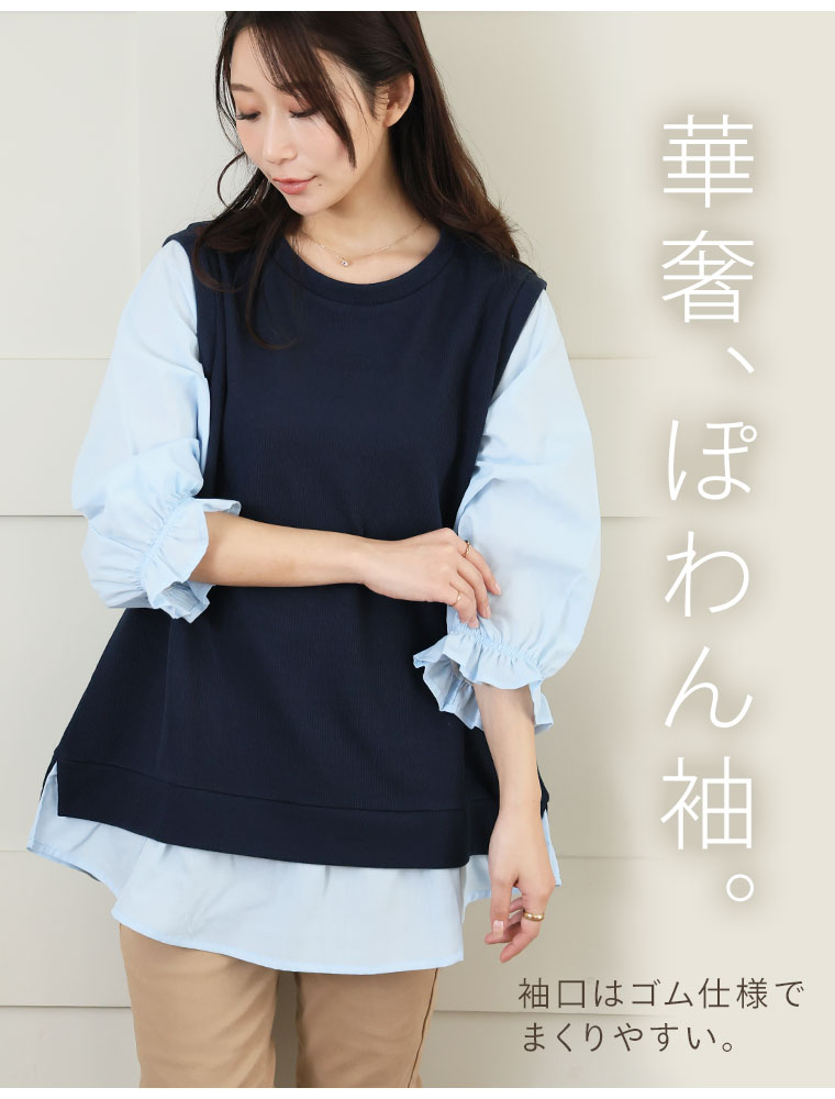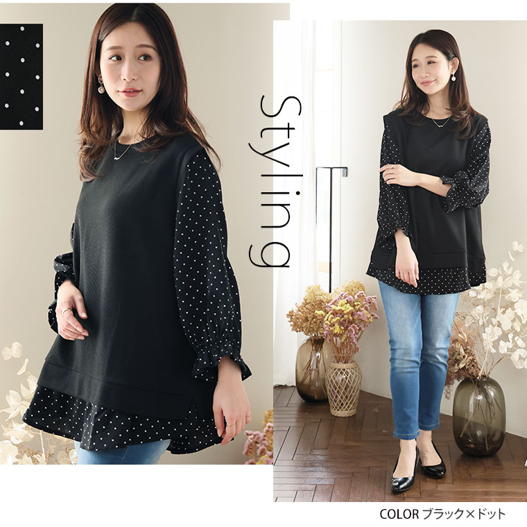 5. 大きいサイズ 【新作◆2月4日販売】 新色追加!! 華奢魅せ×お洒落 さっと着てパッと可愛い 1枚で完成 ドッキングトップス | 大きいサイズの通販ならハッピーマリリン