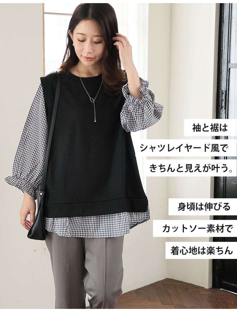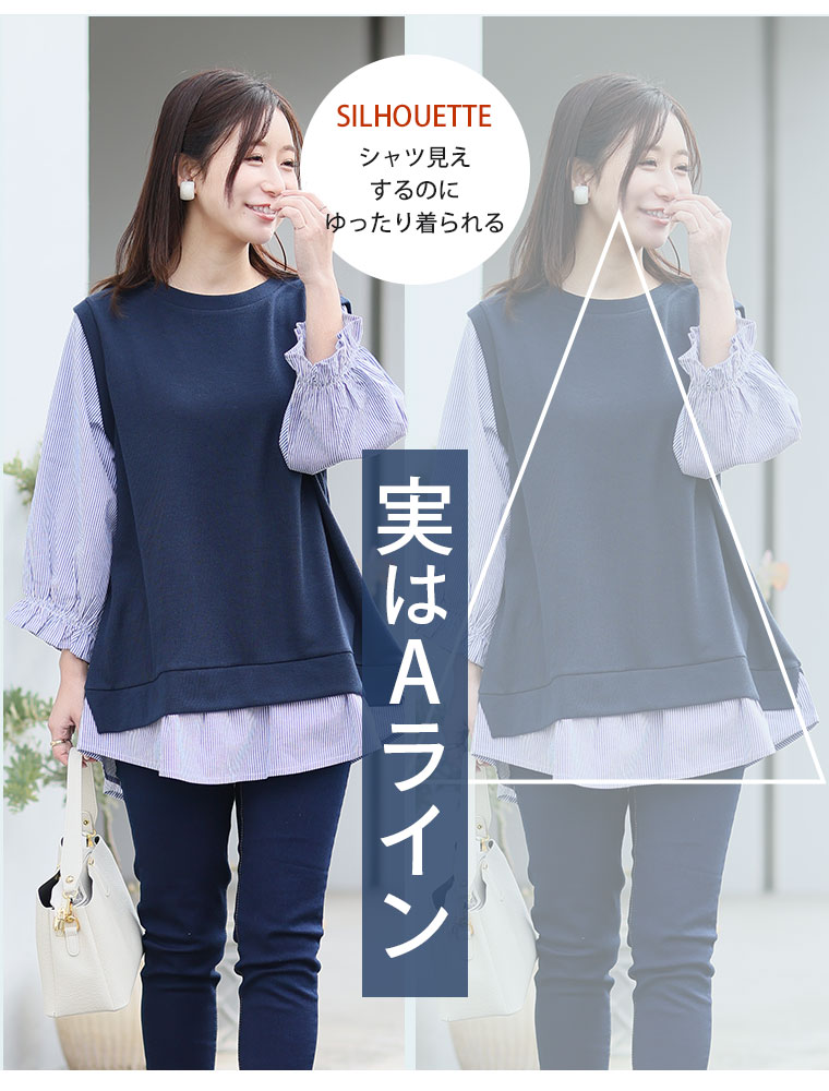 カットソー プルオーバー LL 3L 4L 5L 6L 七分袖 春 春物 春服 ぽっちゃり ゆったり 重ね着風 【新作◆2月4日販売】 新色追加!! 華奢魅せ×お洒落 さっと着てパッと可愛い 1枚で完成 ドッキングトップス | 大きいサイズの通販ならハッピーマリリン