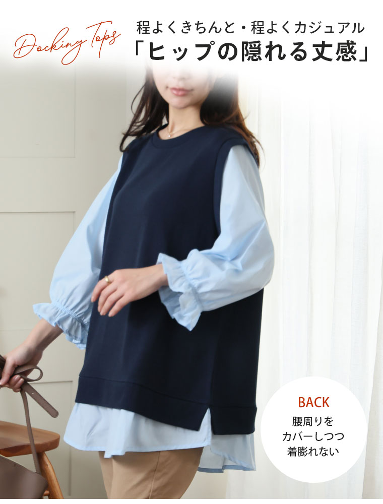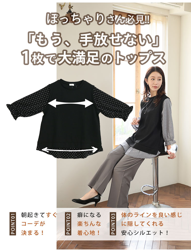 大きいサイズ 【新作◆2月4日販売】 新色追加!! 華奢魅せ×お洒落 さっと着てパッと可愛い 1枚で完成 ドッキングトップス | 大きいサイズの通販ならハッピーマリリン