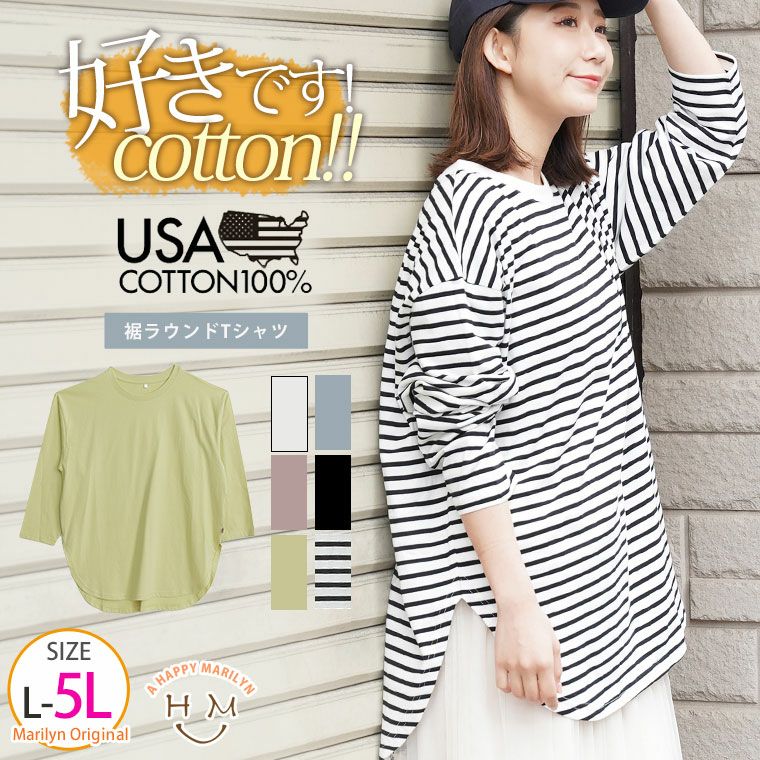 【USAコットン】ゆったり着れてシンプルコーデに差がつく裾ラウンド長袖Tシャツ