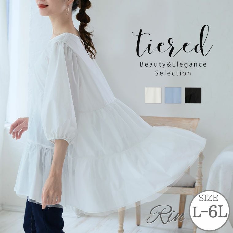 Rin ふんわり大人の可愛さ 華やぎチュール バックティアード チュニック