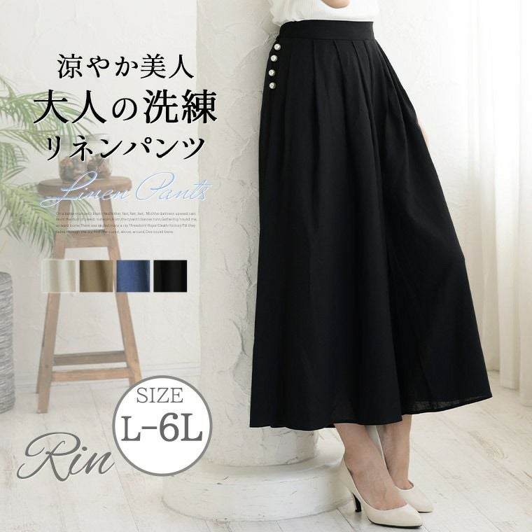 Rin さらり美脚 レーヨン麻パール付きウエストタックパンツ