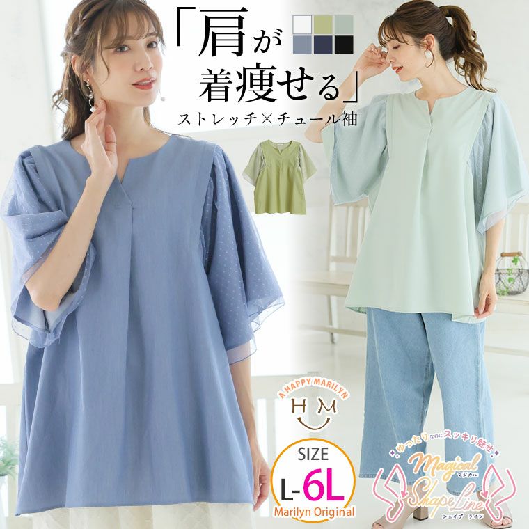 魔法のラインでキレイ魅せ!ストレッチ×チュール袖のフレアブラウス