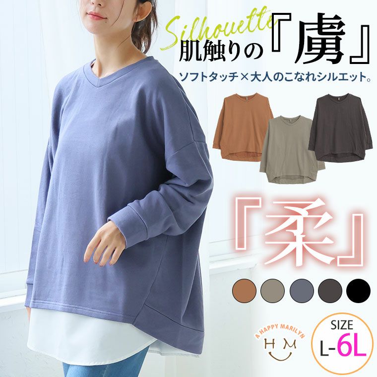 肌触りがいいふんわりさらりこなれシルエット ゆるVトレーナー チュニック