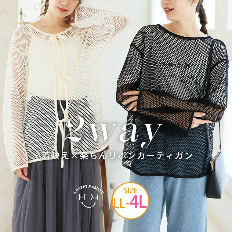 前後2WAY クロシェ風メッシュリボンカーデ