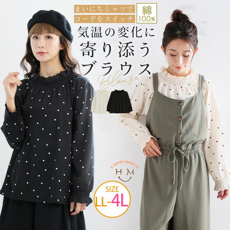 襟袖シャーリングがかわいい!万能ブラウス