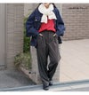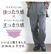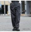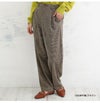 ウエストのタックを見せるテーパードパンツのスッキリ感