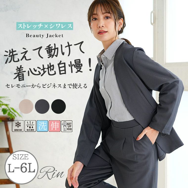 【Rin】スッキリ見えのストレッチジョーゼットノーカラージャケット