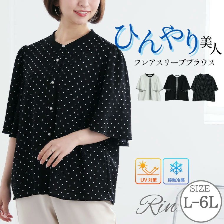 【Rin】ひらり華やか 配色フレア袖ポーラブラウス