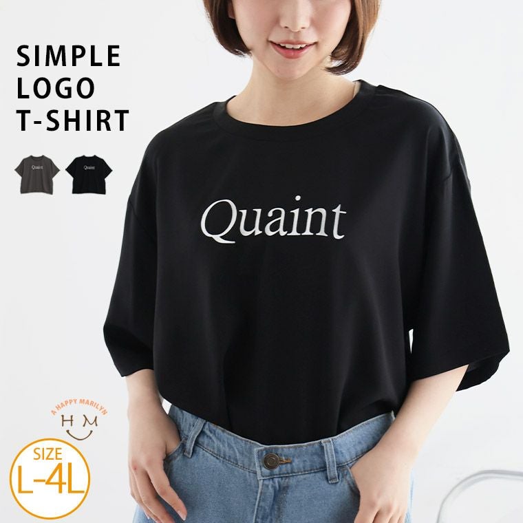 Tシャツ感覚のキレイめカジュアル 箔プリントロゴ入りTブラウス