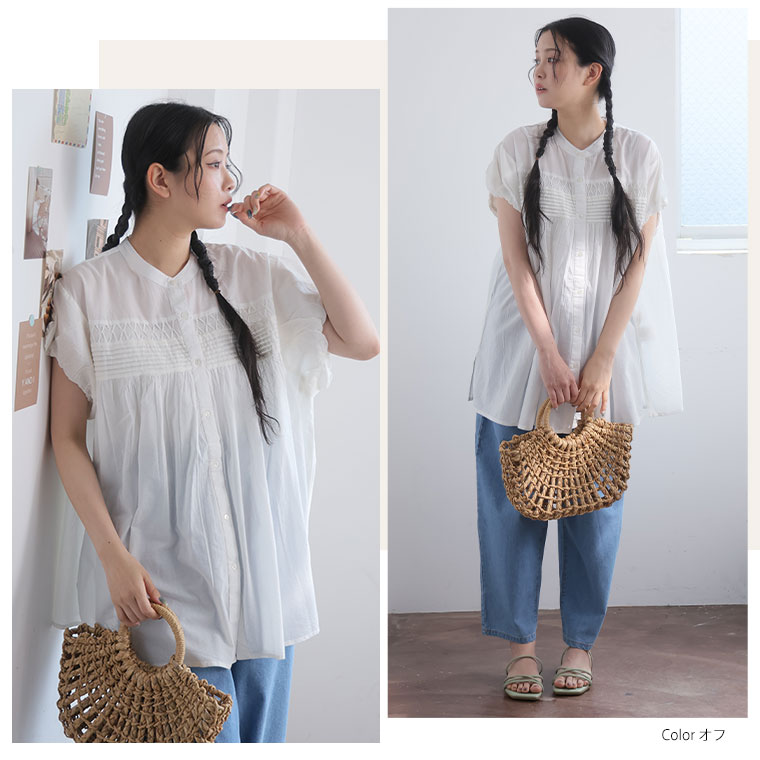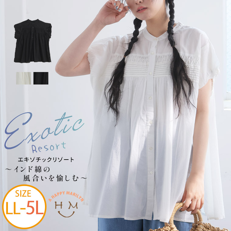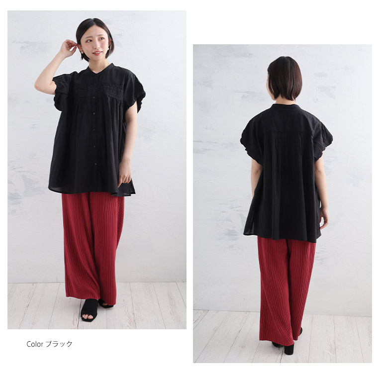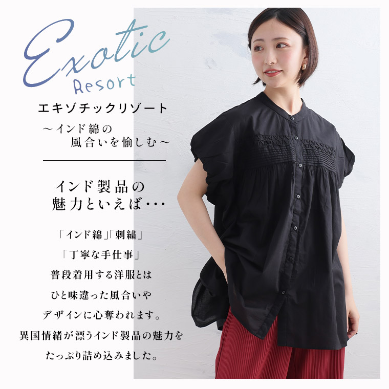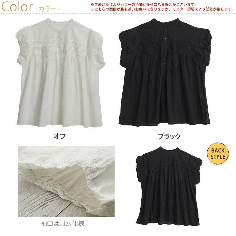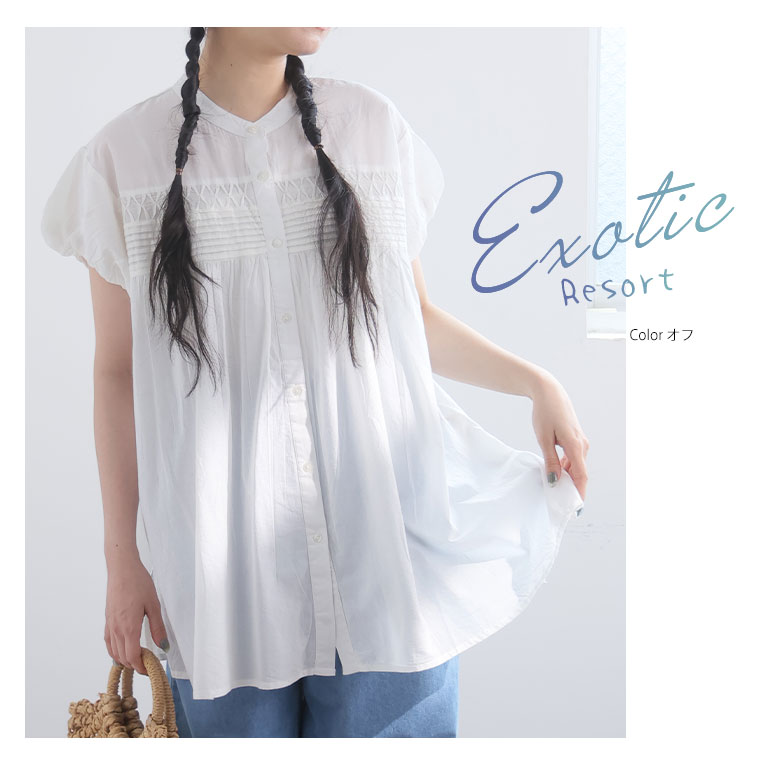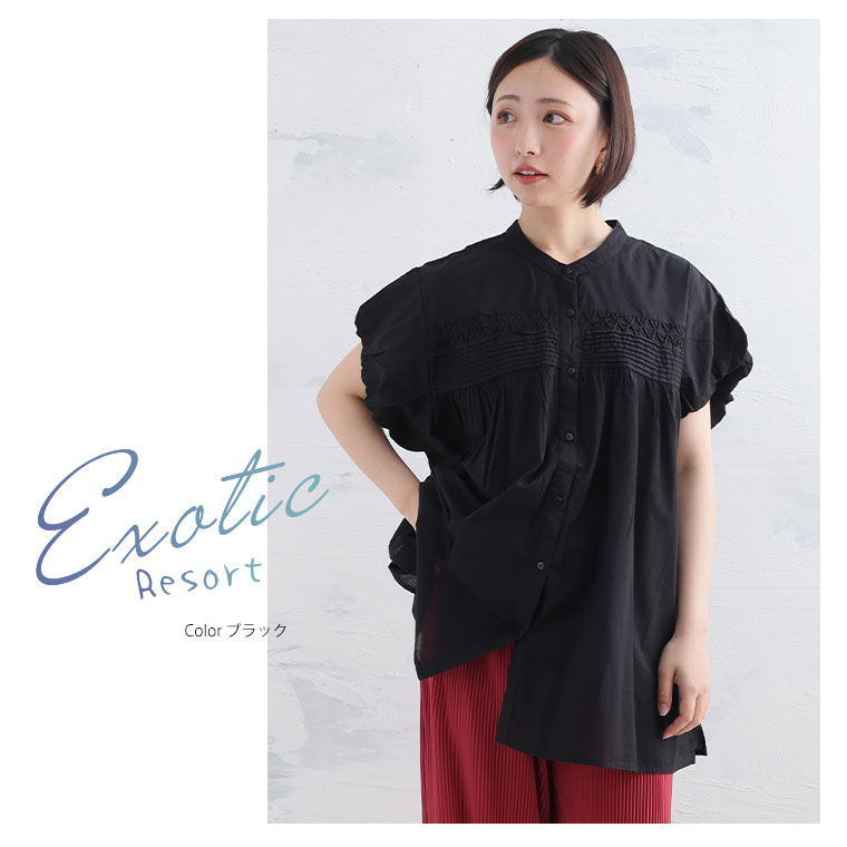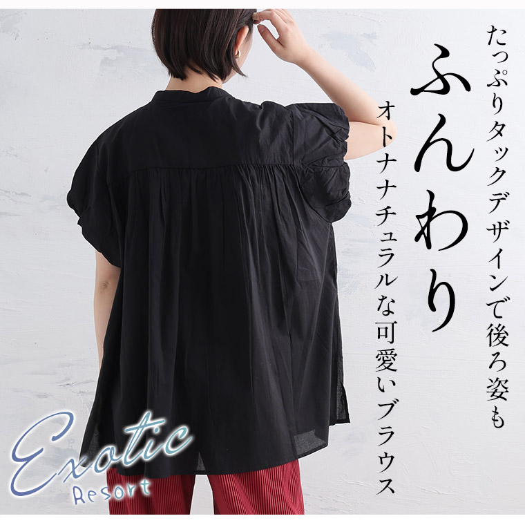 【エキゾチックリゾート】くしゅふわフレンチ袖タック使いブラウス