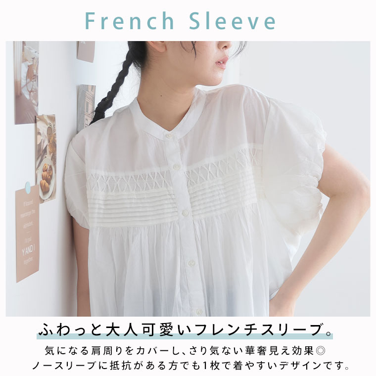 くしゅっと可愛いフレンチスリーブで二の腕華奢魅せ