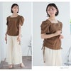 ふんわりパワショルデザインとサイドのシャーリングでメリハリキュートスタイルの完成