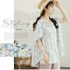 大人のためのはしごレース×フレア袖の華やかプリントシャツ
