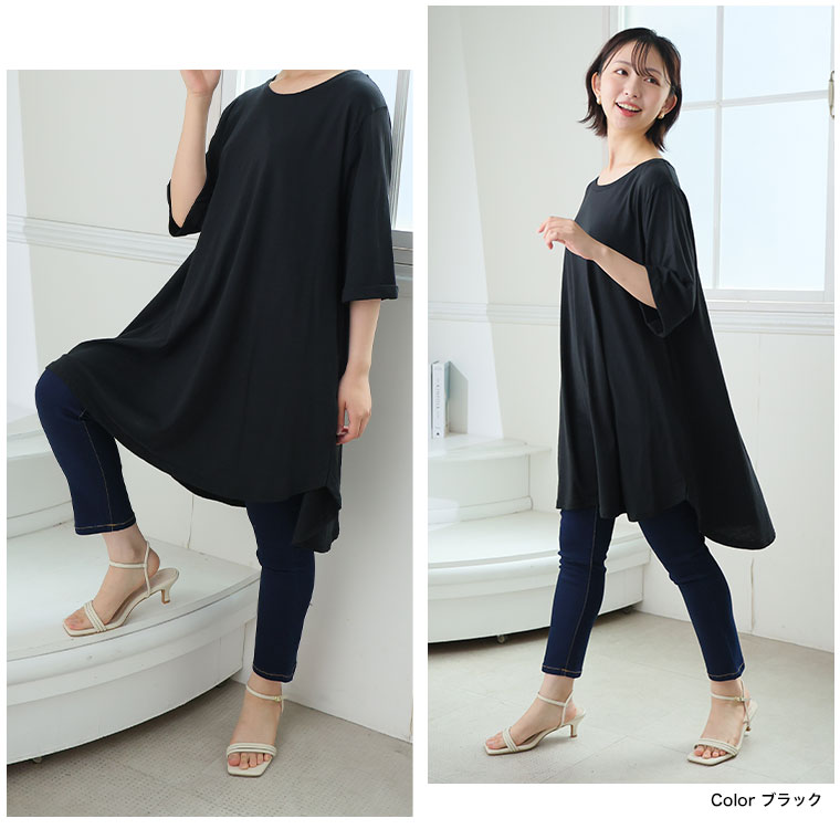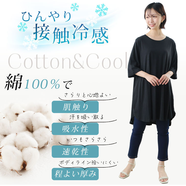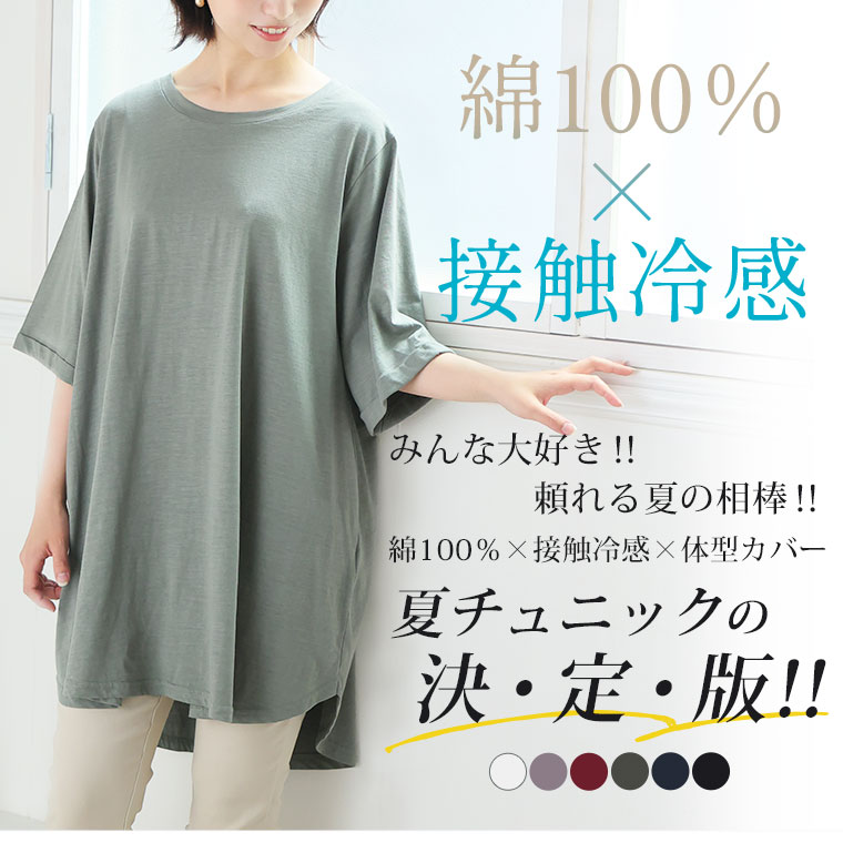 綿100%接触冷感が嬉しいフレアシルエットチュニック