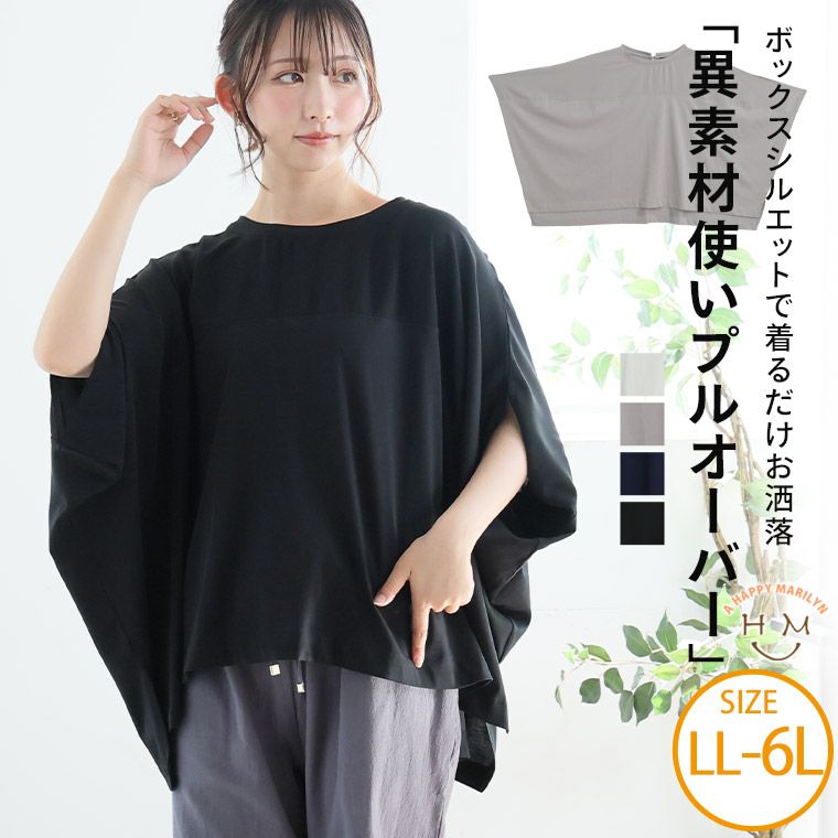 たっぷり身幅でゆったり着られる 異素材使い ボックスシルエット プルオーバー
