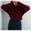 Tシャツ感覚で着られる、首元フリルのゆったりリブニット。