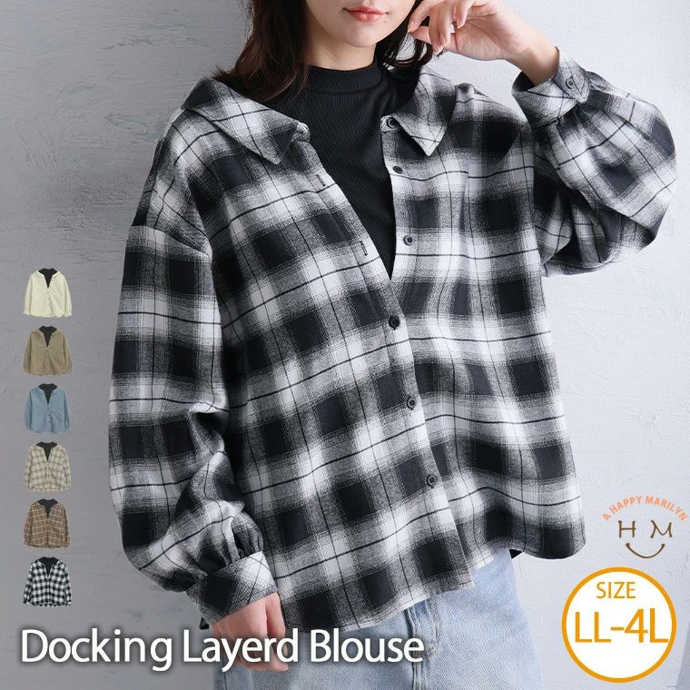 お洒落な重ね着風シャツの着こなしがこれ1枚で完成!